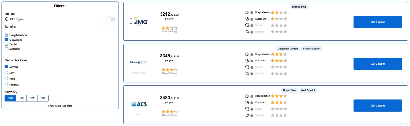 - You receive a clear, side-by-side overview of available insurance options.
